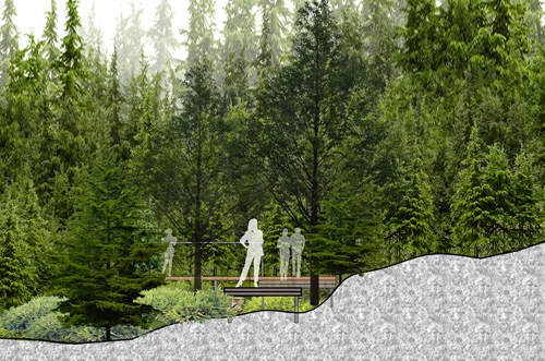 ý tưởng cầu đi bộ trong rừng thông.